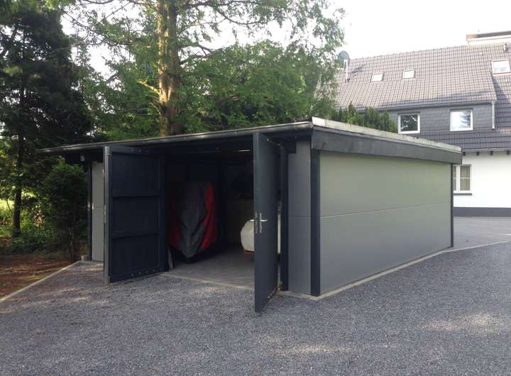 Ein große Garage mit Platz für einen PKW und ihre Fahrräder etc.,