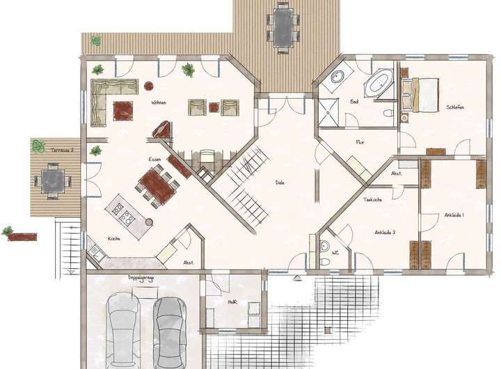 - Zwei beheizte Garagenstellplätze + zwei Außenstellplätze