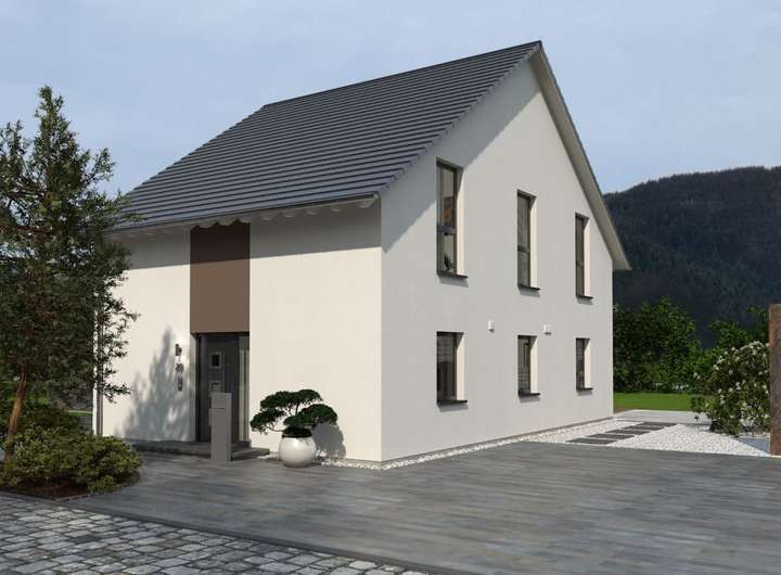 Offenheit, Helligkeit und Großzügigkeit - dadurch zeichnet sich unser Design 28 aus. Vor allem der große Wohn-Ess-Koch-Bereich, der direkt über die Diele betreten werden kann, wird durch die zahlreichen Fensterfronten und den großzügigen Schnitt zu einem Lieblingsort für Familie und Freunde. Das Raumangebot Parterre wird abgerundet durch einen Hauswirtschaftsraum, Gäste-WC mit Dusche sowie ein Arbeits- bzw. Gästezimmer. Ein weiteres Highlight: die Treppe, die in den Wohnbereich integriert ist und von hier in die Privat- und Rückzugsräume der Familie führt. Über die lichte Galerie geht es direkt in die beiden Kinderschlafzimmer und das große Badezimmer mit Dusche, Wanne und WC. Auf der Rückseite der Treppe: das Reich der Eltern. Diese verfügen über ein großes Schlaf- und ein sich direkt anschließendes Ankleidezimmer. Auf einer Fläche von rund 158 m² finden Familien hier unter einem zeitlos-eleganten Satteldach alles, was das Herz begehrt.