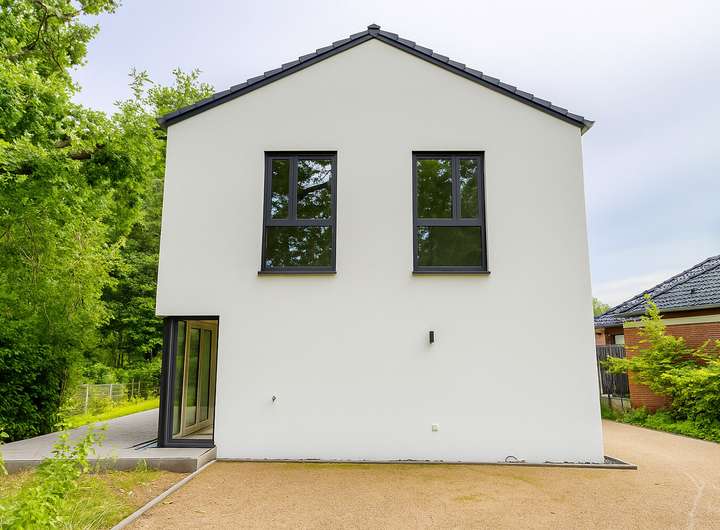 Errichtet in wohngesunder Holzrahmenbauweise nach KfW-40-Plus-Standard überzeugt das Haus mit modernster Technik und hoher Energieeffizienz. Eine Fußbodenheizung in Kombination mit Wärmepumpe sowie eine Photovoltaikanlage mit 20 Modulen (7,8 kWp) und separatem Zweirichtungszähler sichern zukunftsweisendes Wohnen. Die zentrale Be- und Entlüftungsanlage mit 90 % Wärmerückgewinnung sorgt für ein angenehmes Raumklima.