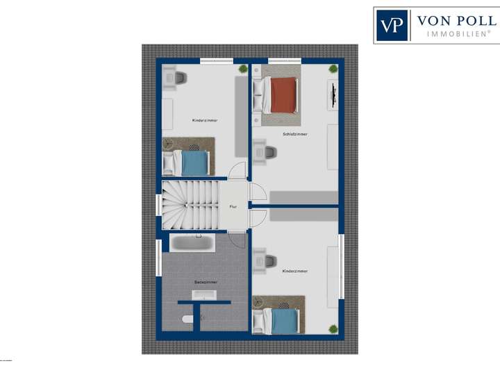 Das Raumangebot umfasst vier Zimmer, davon drei Schlafzimmer – ideal für Familien oder Paare mit Platzbedarf. Ein modernes Vollbad mit bodentiefer Dusche und ein Gäste-WC runden den Grundriss funktional ab.