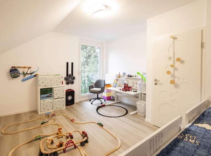 Das Erdgeschoss besticht durch einen offenen Wohn- und Essbereich mit offenem Küchenbereich und direktem Zugang zur Terrasse – der perfekte Ort zum Zusammenkommen und Entspannen. Im Obergeschoss finden sich Schlafzimmer, Kinderzimmer, zuzüglich einem Abstellraum sowie ein modernes Bad. Das Dachgeschoss mit zwei Zimmern schafft zusätzlichen Raum für individuelle Ideen.