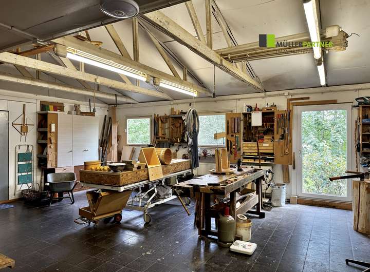 Die früheren Ausbildungsgebäude wurden von den jetzigen Eigentümern in eine Schreinerei sowie in Wohn- und Kreativbereiche mit Atelier umgestaltet. Durch die modulare Bauweise lassen sich die Räume flexibel anpassen – Trennwände können versetzt und Grundrisse so individuell nach den Vorstellungen der Käufer gestaltet werden. Ein Teil der Schreinerei sowie Büro- und Lagerflächen sind derzeit vermietet.