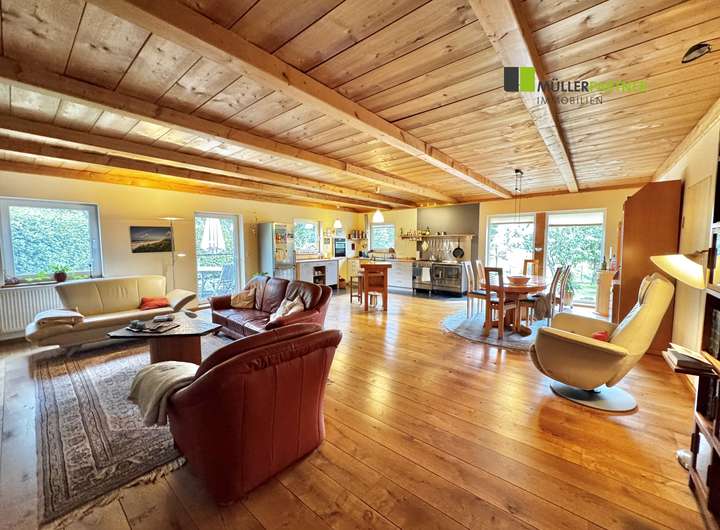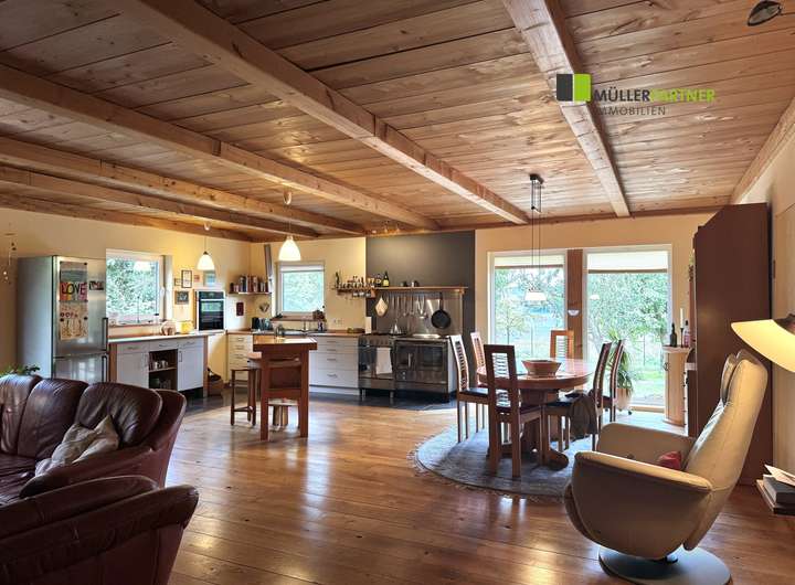 Besonders beeindruckend ist die Atmosphäre des gesamten Anwesens: Mit viel Hingabe wurden die ehemaligen Hallen zu einem inspirierenden Ort mit ganz eigenem Charakter umgebaut. Wer das Grundstück betritt, fühlt sich sofort an die Kultserie „Löwenzahn“ erinnert – an den legendären Bauwagen von Peter Lustig, der mit seiner unkonventionellen Art das kreative Leben zelebrierte.