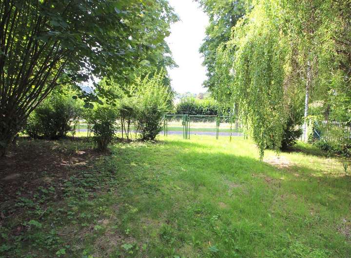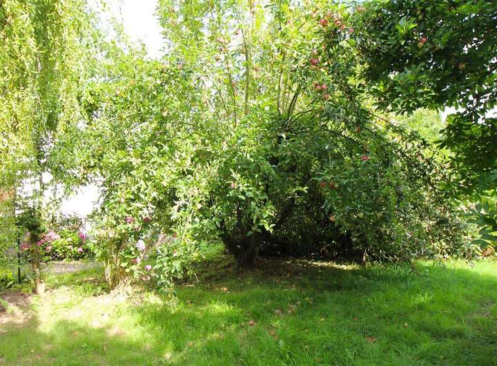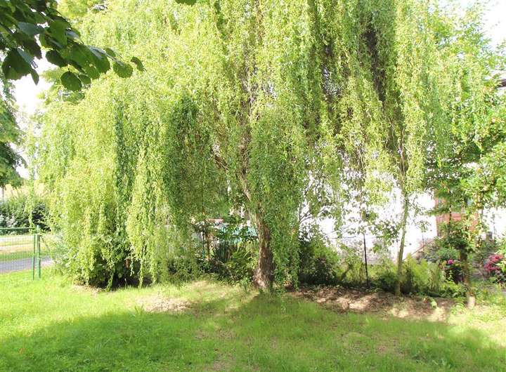 Das zu erwerbende Gesamtgrundstück umfasst ca. 979 m² und besteht aus zwei Grundstücksteilen, einem größeren Grundstücksteil zur Straße hin mit ca. 820 m² sowie einem kleineren Grundstücksteil zur Weser hin mit ca. 159 m². Der kleinere Grundstücksteil zur Weser hin ist mit dichtem Baumbestand bewachsen. Auf dem übrigen Grundstück stehen unter anderem Nuss- und Obstbäume sowie Obststräucher.