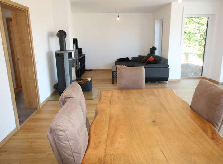 Dieses in KfW55 errichtete hochwertige Einfamilienwohnhaus steht am Rande eines Wohnbaugebietes an einer Anliegerstraße. Das Wohnhaus wurde 2023 gebaut. Derzeit werden die Außenanlagen fertiggestellt. Beheizt wird das Haus mittels Fußbodenheizung, welche mit einer Wärmepumpe versorgt wird. Ein Schwedenofen sorgt für wohlige Wärme in den Übergangszeiten.