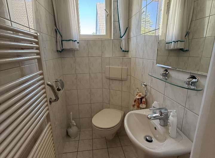 - Erdgeschoss mit Küche, Essbereich, Wohnzimmer, zwei Schlafzimmer, Duschbad und Gäste-WC
