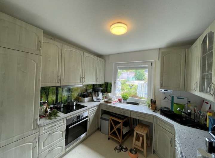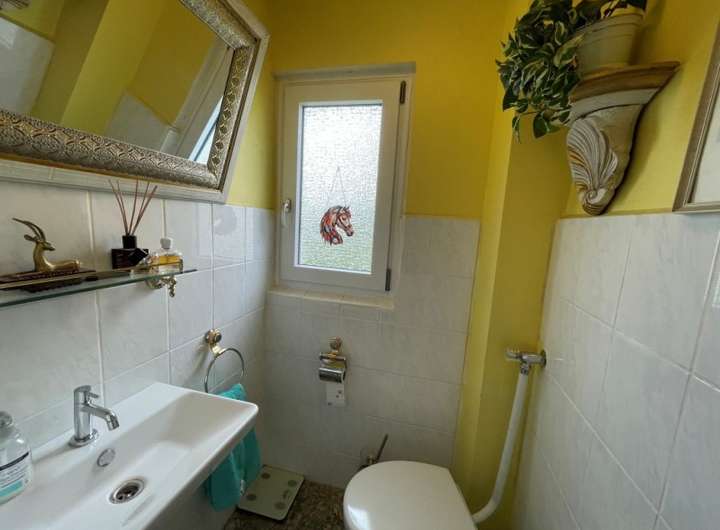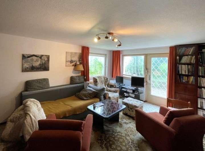 Die Wohnung im Erdgeschoss ist aufgeteilt in vier Zimmer, Küche, Bad, Gäste-WC, Terrasse. Im Obergeschoss vier Zimmer, Küche, Bad, Gäste-WC, Balkon. Diese Wohnung ist vermietet. Im Gartengeschoss separte Einliegerwohnung mit einem Zimmer, Küche und eigenem Freisitz sowie zwei Kellerräume, Heiz- und Technikraum und integrierte Garage.