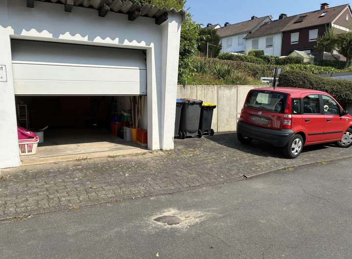 Die Garage (mit neuem Sektionaltor) und der Stellplatz befinden sich an der Straße unterhalb der Immobilie.