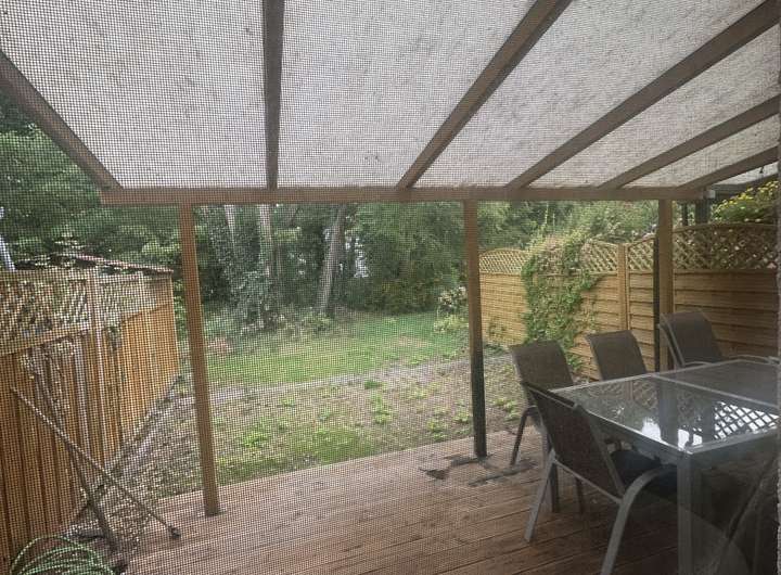 Zur Ausstattung gehören zwei Stellplätze, ein praktischer Schuppen mit viel Stauraum, ein großes Tageslichtbad mit Dusche und Badewanne sowie ein Gäste-WC mit zusätzlicher Dusche. Ein Keller ist nicht vorhanden.