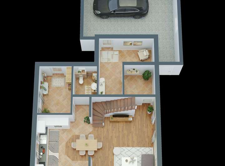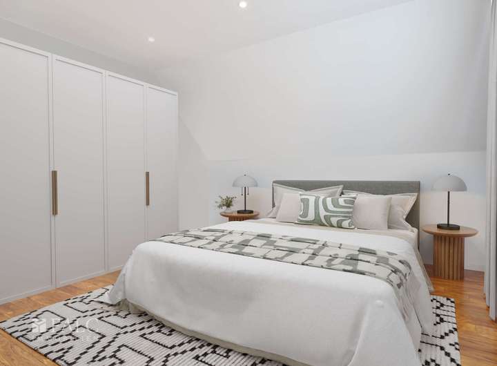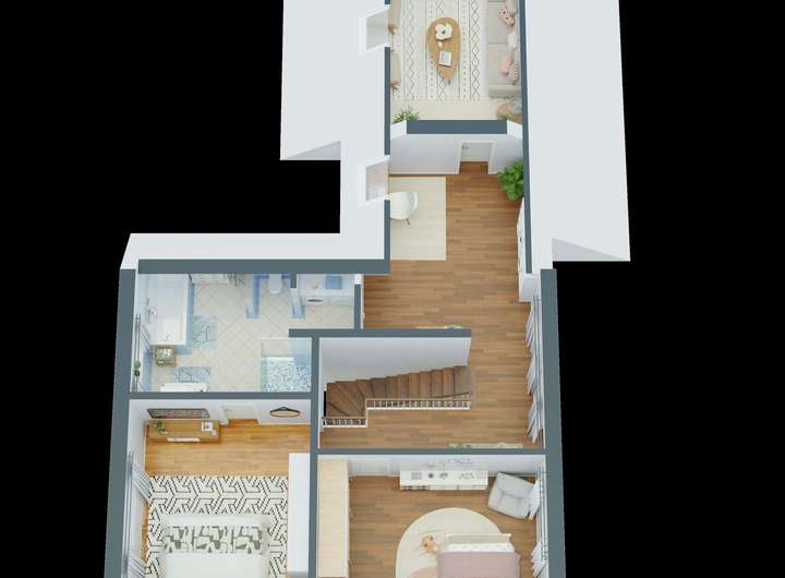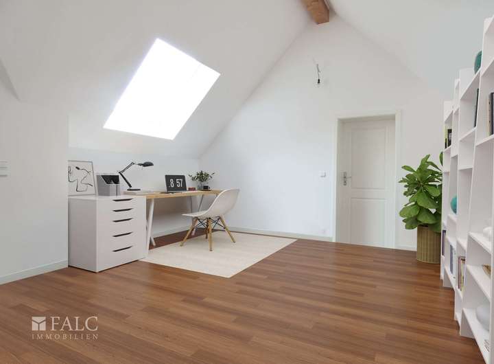 Im Obergeschoss befinden sich die privaten Räume. Das Hauptschlafzimmer bietet ausreichend Platz für einen großen Kleiderschrank und ein gemütliches Bett. Zwei weitere Zimmer können flexibel als Kinderzimmer, Gästezimmer oder Homeoffice genutzt werden. Das Badezimmer auf dieser Etage ist mit modernen Armaturen ausgestattet und bietet eine erholsame Atmosphäre.