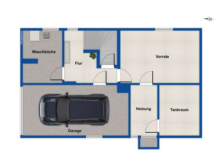 Das Haus ist voll unterkellert und bietet dadurch zusätzlichen Stauraum und vielfältige Nutzungsmöglichkeiten. Eine Garage mit direktem Zugang zum Haus gehört ebenfalls dazu.