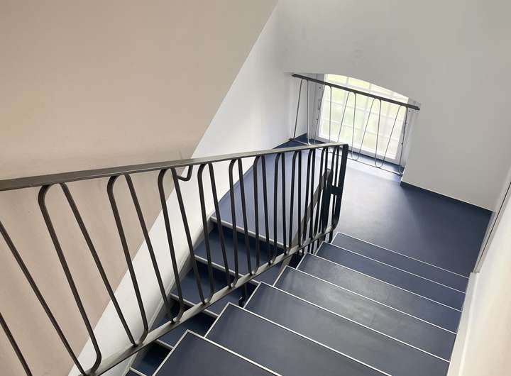 Das solide Gebäude wurde 1860 erbaut, 1960 und 1971 erweitert und mehrfach modernisiert. Es zeichnet sich durch stabile Bruchsteinwände, und eine klassische sehr ansprechende Fassadengestaltung aus. Im Erdgeschoss befinden sich derzeit Büroräume, im Obergeschoss ein Mix aus Büro- und Wohnflächen,