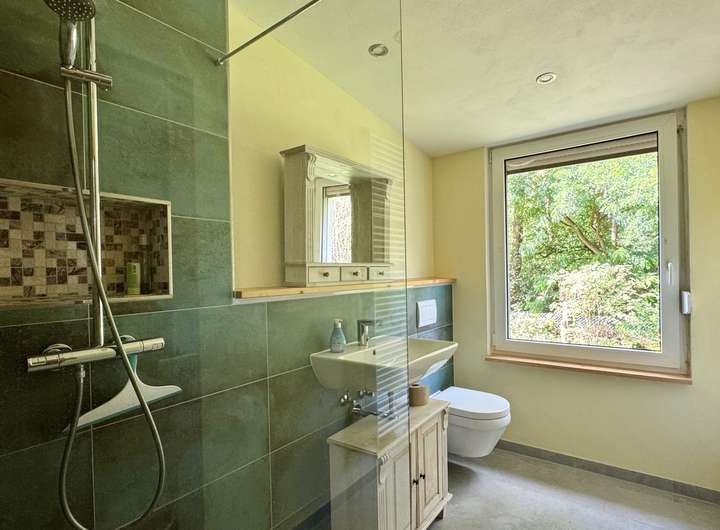 - Bad im Erdgeschoss komplett neu (2023) (mit atmungsaktivem Kalkputz ausgekleidet)