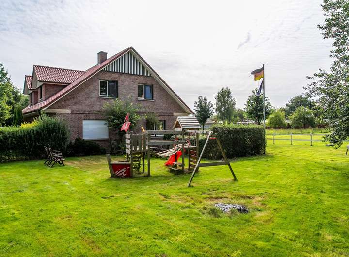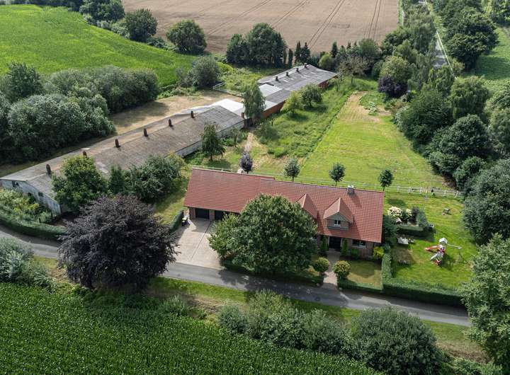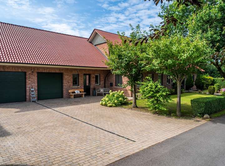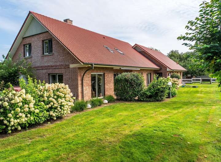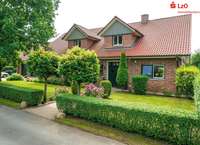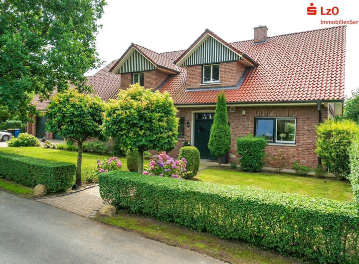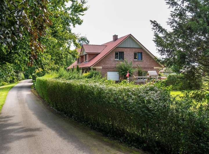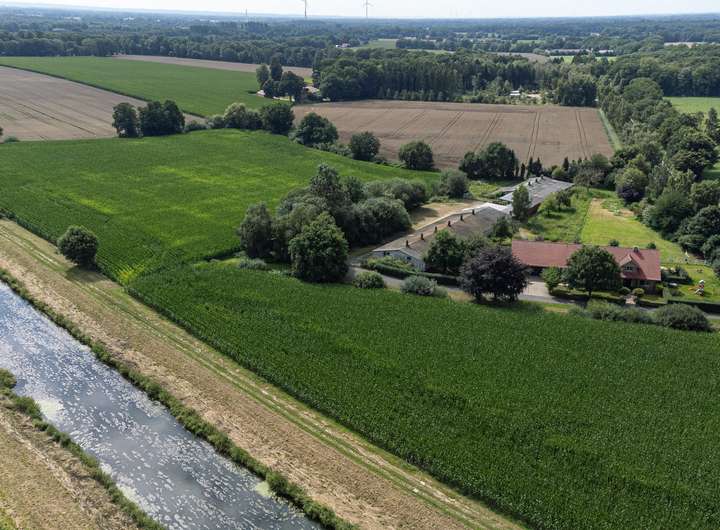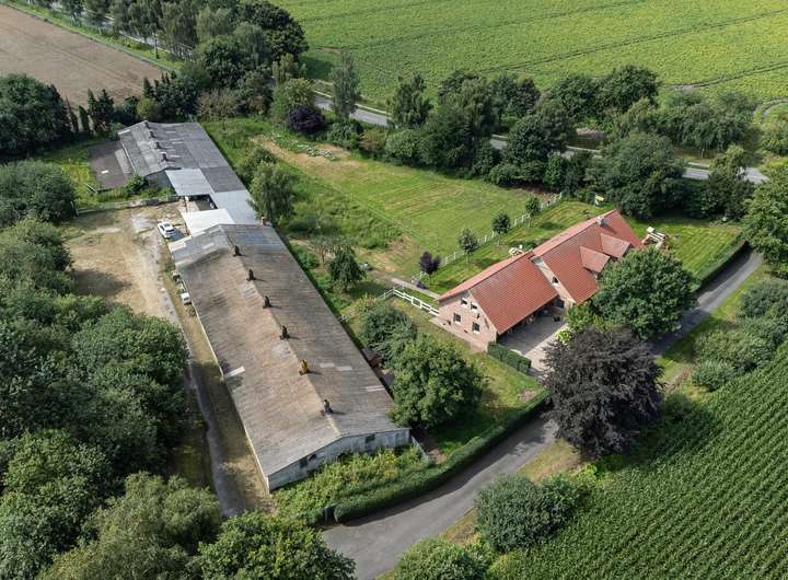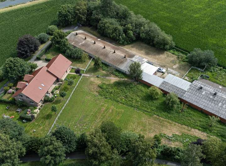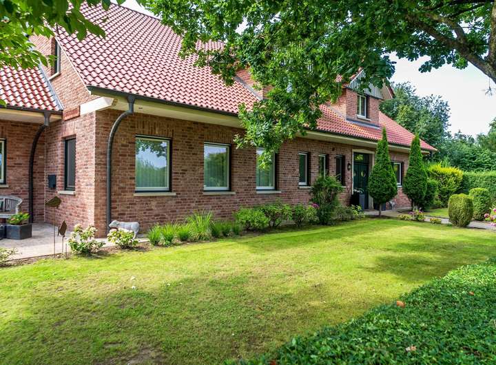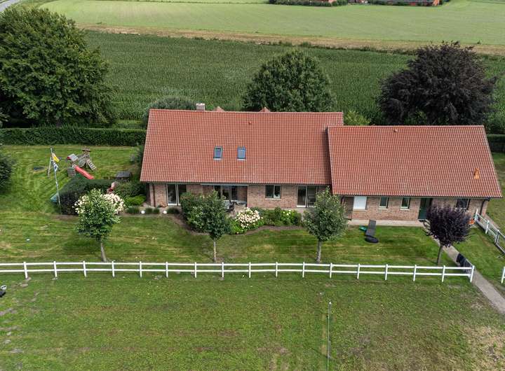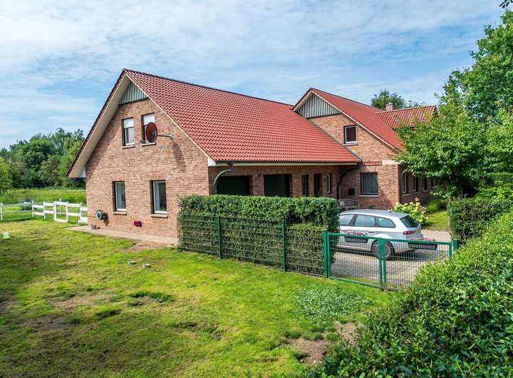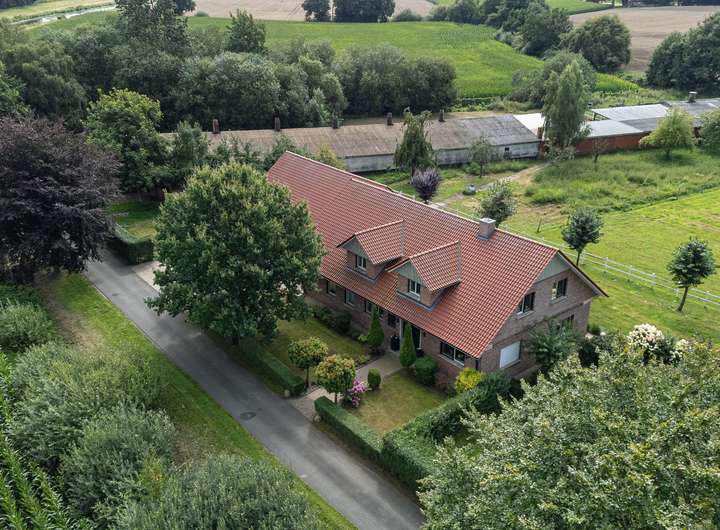Dieses exklusive Anwesen befindet sich in idyllischer Alleinlage in Uptloh ( Essen-Oldenburg ) und bietet auf einem großzügigen Grundstück von ca. 10.300 m² viel Platz und Ruhe. Das 2010 erbaute Wohnhaus besticht durch hochwertige Materialien und eine moderne Ausstattung. Die ca. 200 m² Wohnfläche verteilen sich auf 170 m² im Erdgeschoss und 30 m² im Dachgeschoss. Darüber hinaus steht ein großzügiger Dachboden zur Verfügung. Hier sind u.a. auch Wasseranschlüsse vorbereitet. Dieser Bereich bietet derzeit ca. 120 m² Nutzfläche. Einer der beiden ehemaligen Kälberställe wird derzeit für die Pferdehaltung genutzt. Die Heizungsanlage ( Gas ) wurde Anfang 2025 getauscht in eine Weisshaupt- Brennwerttherme. Der Grundriss verteilt sich wie folgt: Im Erdgeschoss stehen Diele, Gäste-WC, Küche, ein geräumiger Wohn- u. Essbereich mit Ofen, ein Schlafzimmer mit Bad und Ankleide sowie diverse Abstellräume zur Verfügung. Außerdem ein großes Büro, das mit wenig Aufwand auch zu zwei Schlafzimmern umfunktioniert werden könnte. Das Dachgeschoss beherbergt einen HWR, ein Bad und zwei Schlafzimmer. Lassen Sie sich diese besondere Immobilie nicht entgehen und verschaffen Sie sich mit uns einen persönlichen Eindruck. Wir freuen uns auf Ihre Anfrage.