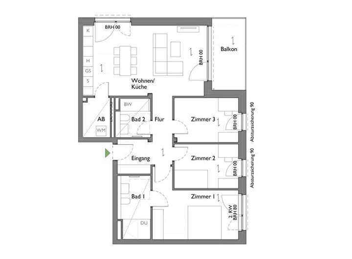 Echtholzparkett verleiht allen Wohnbereichen natürlich-wohnliches Flair, während die moderne Fußbodenheizung ganzjährigen Komfort gewährleistet. Die großzügigen Raumhöhen von 2,75 Metern schaffen ein luftiges Wohngefühl, das durch hochwertige Sanitärausstattung namhafter Markenhersteller komplettiert wird. Der private Balkon erweitert den Wohnraum nach außen und bietet direkten Bezug zur grünen Umgebung.