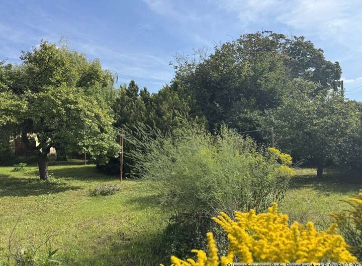 Das Eckgrundstück hat eine Größe von ca. 704 m² und ist rechteckig geschnitten. Die größere der beiden Straßenfronten ist ungefähr 31 Meter lang. Die zweite Straßenfront weist eine Breite von ca. 21 Metern auf. Durch die Ecklage und die Größe bietet das Grundstück interessante Möglichkeiten der Bebauung. Ein großzügiges Einfamilienhaus im Bungalowstil ist genauso denkbar wie ein Haus in eineinhalbgeschossiger Bauweise oder ein Doppelhaus. Das konkrete Vorhaben sollte mit dem zuständigen Bauamt abgestimmt werden. Das Grundstück wurde bis jetzt als Freizeit- und Erholungsgrundstück genutzt und ist unbebaut. Es befindet sich in gepflegtem Zustand und ist fast komplett eingezäunt. Großzügige Rasenflächen sind teilweise mit Koniferen, Laub-, Obst- und Nadelbäumen bewachsen. Eine hochgewachsene Hecke bietet Sichtschutz zu den Straßen.