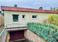 massives Einfamilienhaus mit Terrasse im Bungalowstil, voll unterkellert; im Garten befindet sich u.a. noch ein kleines Gästehaus;
