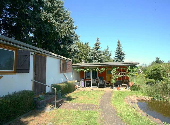 Auf dem etwa 1.000 m² großen Grundstück erwarten Sie ein charmantes Sommerhaus, ein restaurierter Bauwagen, verschiedene Nebengebäude und mitunter auch eine Außenküche. Perfekt für alle, die das Leben im Grünen lieben.