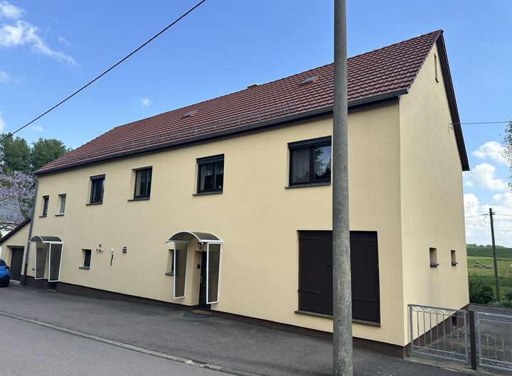 Dieses gepflegte Zweifamilienhaus aus dem Jahr 1950 bietet zahlreiche Nutzungsmöglichkeiten und ausreichend Platz für ein bis zwei Haushalte unter einem Dach. Die Immobilie wurde über die Jahre hinweg regelmäßig in stand gehalten und präsentiert sich in einem guten Zustand. Die linke Haushälfte umfasst drei Zimmer, die rechte vier Zimmer. Beide hälften können nach belieben verbunden werden oder getrennt bleiben. Insgesamt erstreckt sich das Gebäude über zwei Etagen. Das ausbaufähige Dachgeschoss bietet weiteres Potenzial zur individuellen Gestaltung. Das 840 m² große Grundstück bietet reichlich Raum zur persönlichen Entfaltung. Der liebevoll angelegte Garten beherbergt ein Schuppen und eine gemütliche Laube. Auf dem Grundstück stehen zwei Garagenstellplätze sowie sechs Außenstellplätze zur Verfügung.