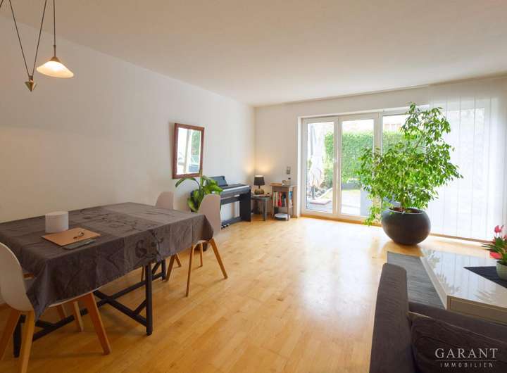 * Wohnzimmer mit Zugang zu Terrasse und Garten