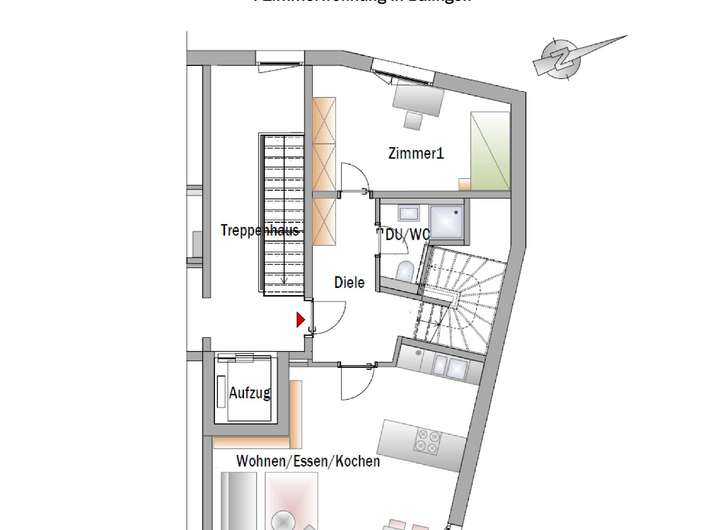 Die angebotene 4-Zimmer-Maisonettewohnung befindet sich im 2. Obergeschoss und Dachgeschoss des Gebäudes Beim Mühltor 7/1 im Stadtzentrum von Balingen.