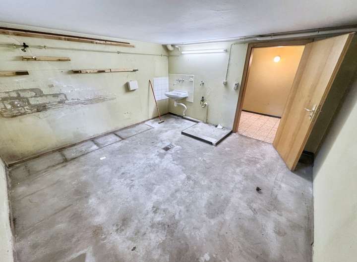 - Beheizter Vollkeller ( Deckenhöhe 2,10 Meter ) mit Außenzugang
