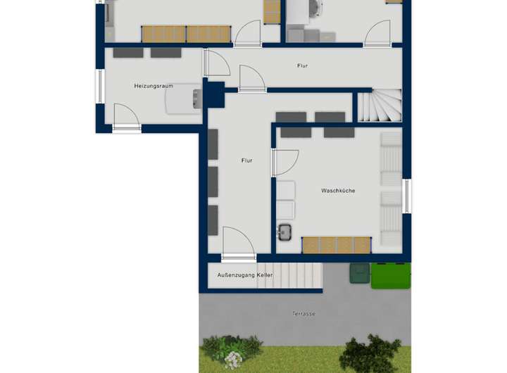 Der vollunterkellerte Bereich bietet zahlreiche Lager- und Hobbyräume, eine großzügige Waschküche sowie einen Heizungsraum mit einer im Jahr 2009 erneuerten Ölheizung. Dank des praktischen Außenzugangs gelangen Sie direkt vom Keller in den Garten.