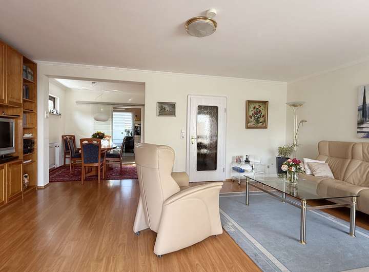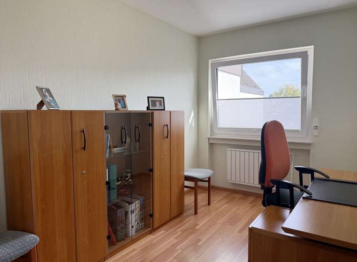 Hier im Dompfaffweg wird es Ihnen gefallen. Sie wohnen in einer ruhigen und gepflegten Anliegerstraße - hier können Ihre Kleinen noch auf der Straße spielen. Ihren Wagen parken Sie in Ihrer Garage direkt am Haus oder auf dem davor liegenden Stellplatz. In Ihrer geräumigen Diele ist viel Platz für Garderobe und Schuhe, auch das Gäste WC ist hier untergebracht. Von Ihrer modern eingerichteten Küche geht es über die platzsparende Glas-Schiebetür ins gemütliche Esszimmer, das zum Wohnraum hin geöffnet ist. Der insgesamt 35,5 m² große Wohn-Essbereich lässt sich perfekt einrichten. Auf Ihrer großzügigen Terrasse mit dem herrlich angelegten kleinen aber feinen Garten werden Sie die sonnigen Monate des Jahres so richtig genießen. Hier können Sie auch in größerer Runde feiern und mit Freunden und Familie nette Grillabende verbringen. Im Obergeschoss erwarten Sie drei bis zu 15 m² große Schlafräume und das großzügige Tageslichtbad. Die kleine Loggia ist ideal zum Betten lüften oder dient am Abend als kleine Oase zum frische Luft schnappen, vor dem Zubettgehen. Ihr Dachgeschoss ist komplett ausgebaut. Hier ist eine richtige 2-Zimmer-Wohnung mit eigener Küche und Bad untergebracht - ideal für ein Aupair, Ihren fast erwachsenen Sprössling oder einen Elternteil, den Sie bei sich aufnehmen möchten. Zudem ist Ihr Haus voll unterkellert und verfügt praktischerweise über einen Gartenausgang. Ein großer Hobbyraum, ein ebenso großer Hauswirtschaftsraum und der Vorratsraum sorgen für ausreichend Bastel-, Abstell- und Lagerflächen. Freuen Sie sich auf dieses tipp-topp gepflegte Haus, das in Kürze freigestellt werden kann, in das Sie, ohne große Renovierungsarbeiten, schon bald einziehen können.
