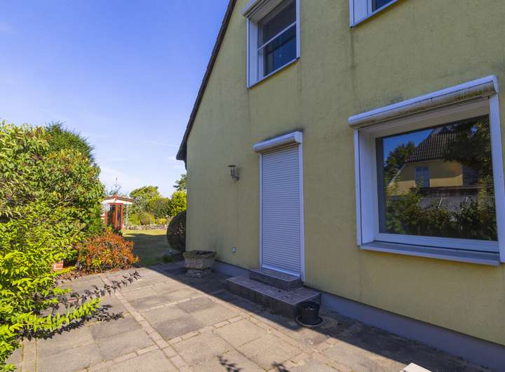 Das Haus kann sowohl als Einfamilien- als auch als Zweifamilienhaus genutzt werden. Beide Wohneinheiten verfügen über einen identischen Grundriss mit Wohn- und Essbereich, zwei Schlafzimmern, Küche und Tageslichtbad. Vom Wohnbereich aus gelangen Sie direkt auf die sonnige Terrasse mit Blick in den Garten. Eine zweite Terrasse befindet sich am Eingangsbereich.