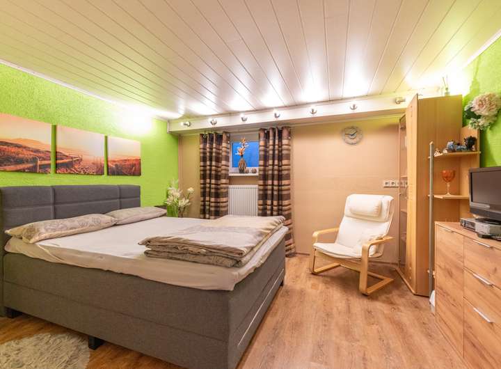 - Einliegerwohnung: Separater Eingang, 1 Schlafzimmer, Badezimmer, Wohnzimmer mit Kaminofen.