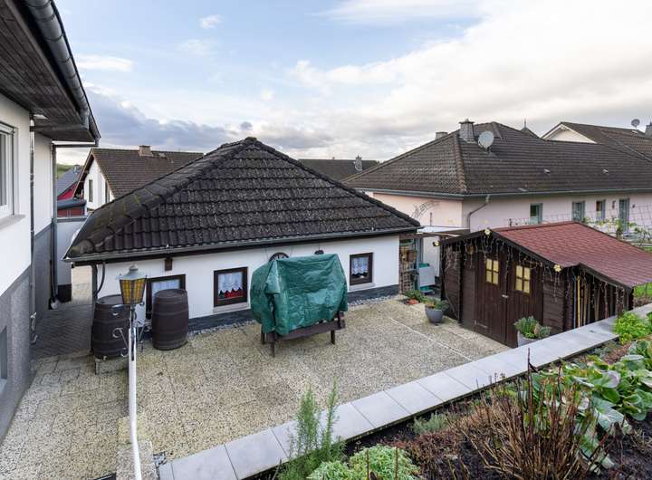 - Innenhof mit Schuppen für flexible Nutzungsmöglichkeiten und zusätzlichen Stauraum.