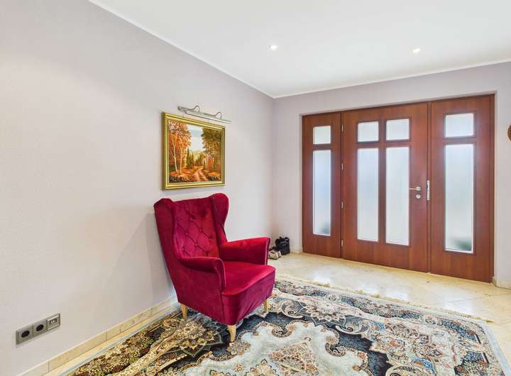 Schon beim Betreten dieses Anwesens spürt man die Großzügigkeit und das warme Ambiente. Über die Nordseite gelangen Sie in das helle Entree, von dem sich die Räume des Erdgeschosses harmonisch erschließen.