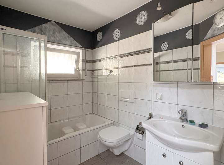 Auf der Erdgeschoßebene befinden sich noch zwei (Schlaf-)Zimmer sowie ein Tageslicht-Bad mit Badewanne.