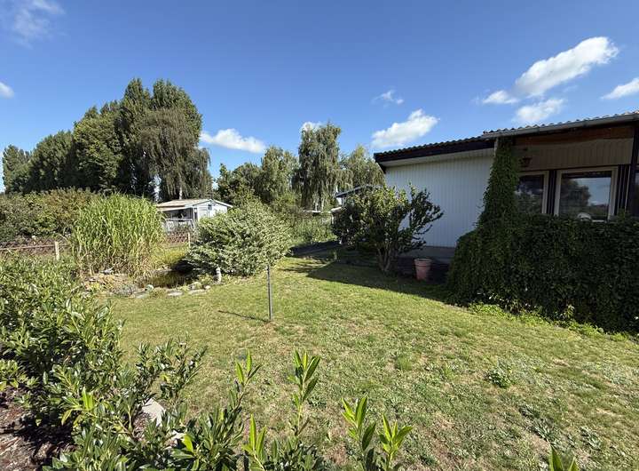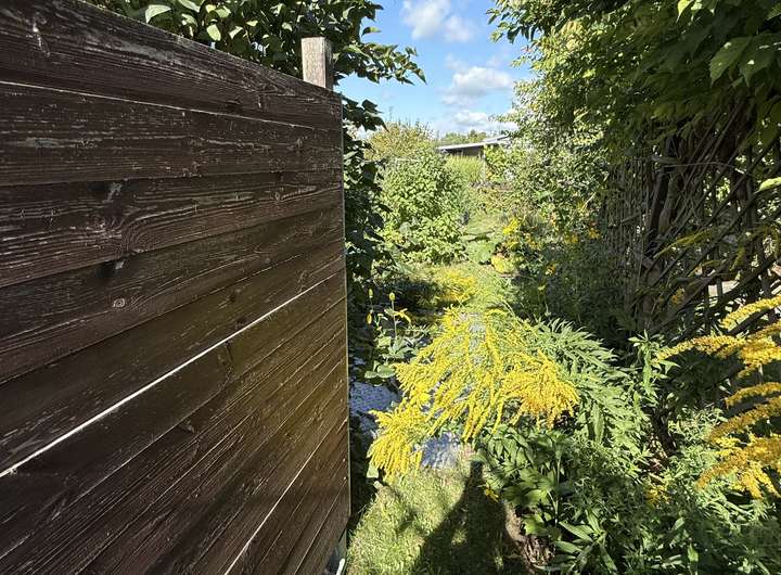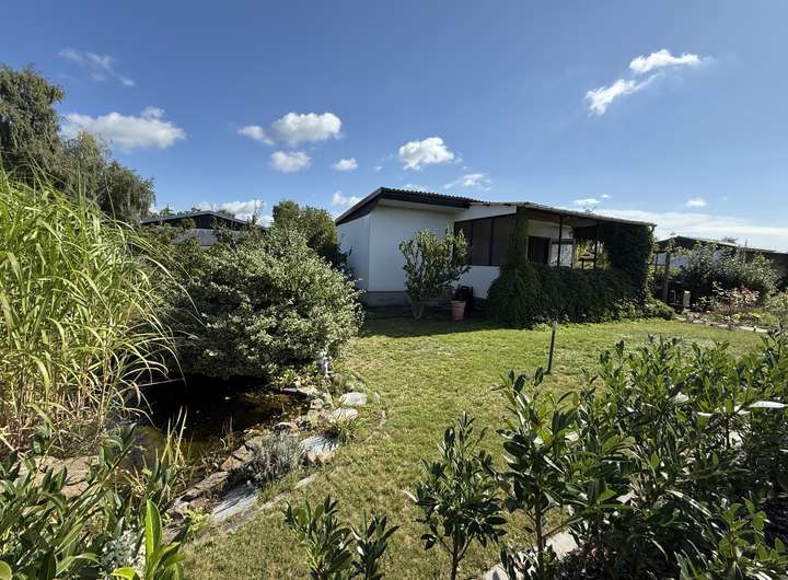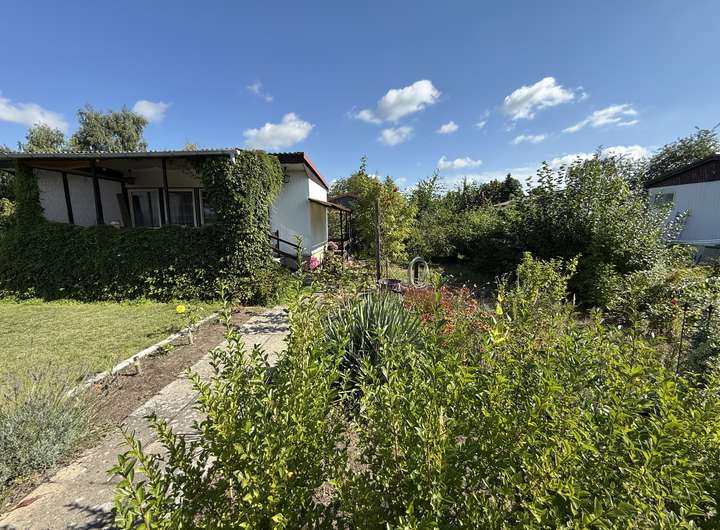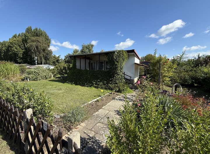 Es handelt sich um eine Parzelle (Größe der individuell umzäunten, eigenen Parzelle ohne Gemeinschaftsflächenanteile s. Feld "Grundstücksgröße") in einer großzügigen Anlage mit 57 Erholungsgärten.