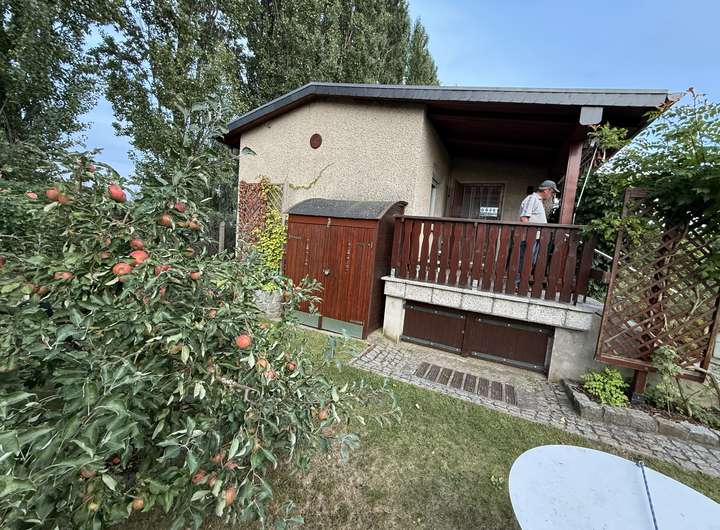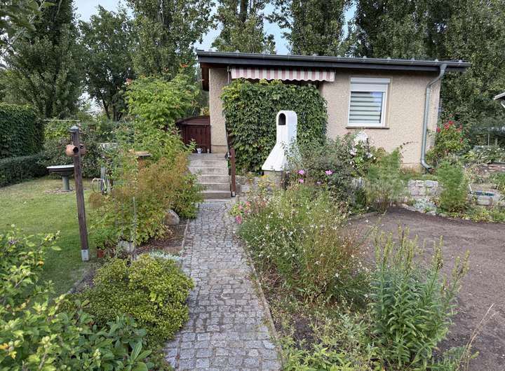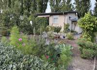 Es handelt sich um eine Parzelle (Größe der individuell umzäunten, eigenen Parzelle ohne Gemeinschaftsflächenanteile s. Feld "Grundstücksgröße") in einer großzügigen Anlage mit 57 Erholungsgärten.