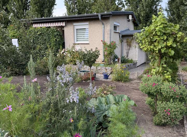 Es gibt keine Pflicht zum Anbau von Gemüse etc. (kein Kleingarten), aber natürlich ist das gern gesehen. Die Gärten sind durch jahrzehntelange Nutzung mit toller Erde und schönem Baumbestand gesegnet. Viele Parzellen haben einen kleinen Teich o.Ä. - bitte Bilder sehen.