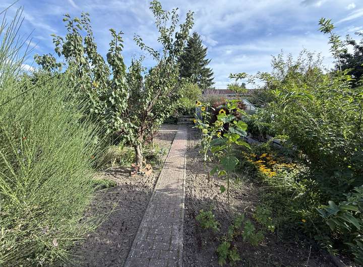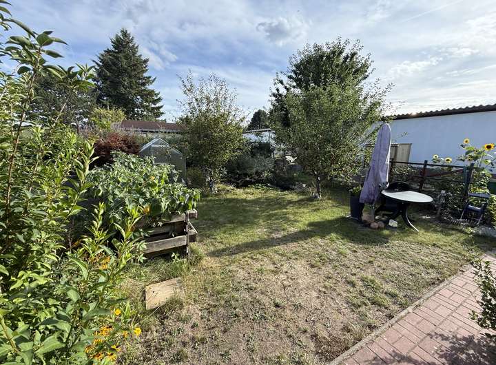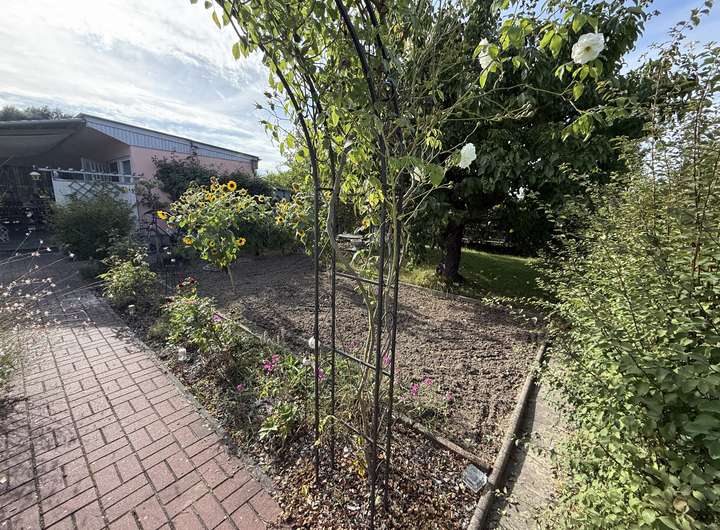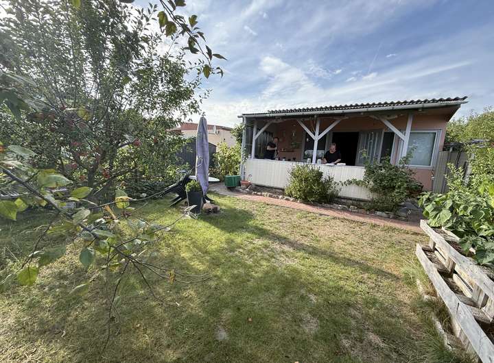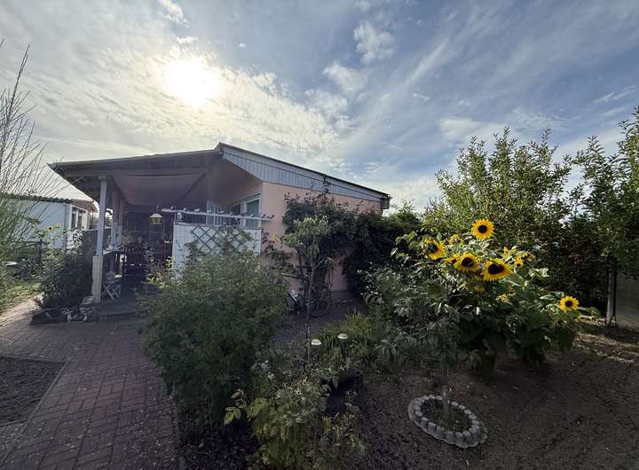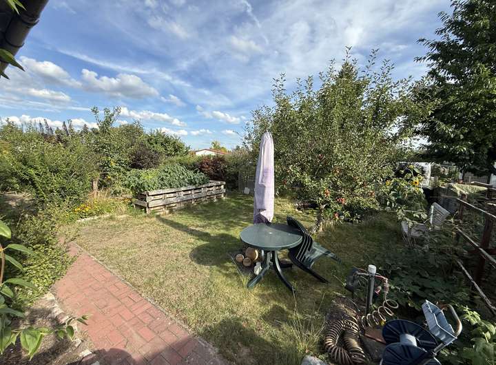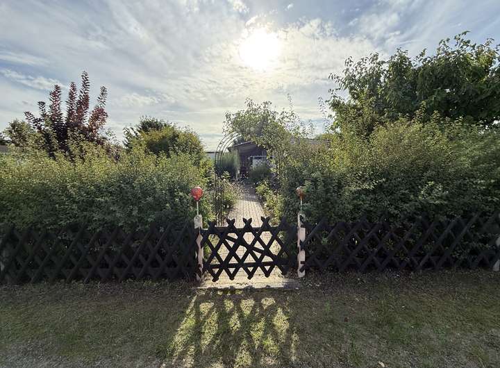 Es handelt sich um eine Parzelle (Größe der individuell umzäunten, eigenen Parzelle ohne Gemeinschaftsflächenanteile s. Feld "Grundstücksgröße") in einer großzügigen Anlage mit 57 Erholungsgärten.