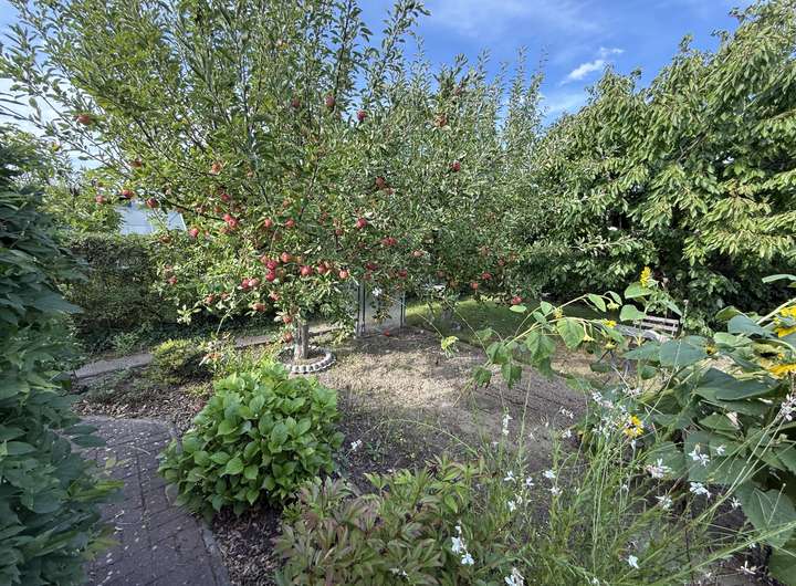 Es gibt keine Pflicht zum Anbau von Gemüse etc. (kein Kleingarten), aber natürlich ist das gern gesehen. Die Gärten sind durch jahrzehntelange Nutzung mit toller Erde und schönem Baumbestand gesegnet. Viele Parzellen haben einen kleinen Teich o.Ä. - bitte Bilder sehen.