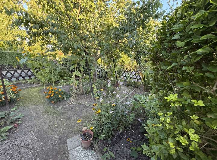 Es gibt keine Pflicht zum Anbau von Gemüse etc. (kein Kleingarten), aber natürlich ist das gern gesehen. Die Gärten sind durch jahrzehntelange Nutzung mit toller Erde und schönem Baumbestand gesegnet. Viele Parzellen haben einen kleinen Teich o.Ä. - bitte Bilder sehen.