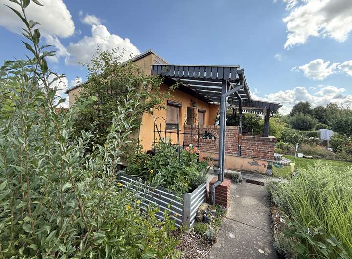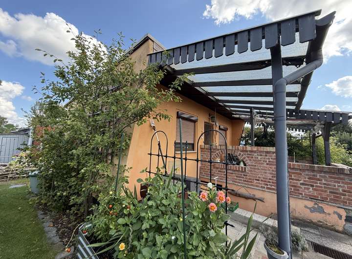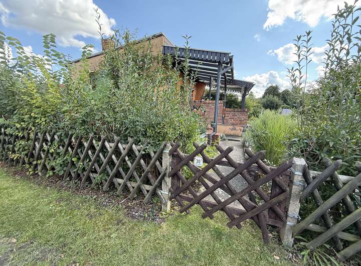 Es handelt sich um eine Parzelle (Größe der individuell umzäunten, eigenen Parzelle ohne Gemeinschaftsflächenanteile s. Feld "Grundstücksgröße") in einer großzügigen Anlage mit 57 Erholungsgärten.