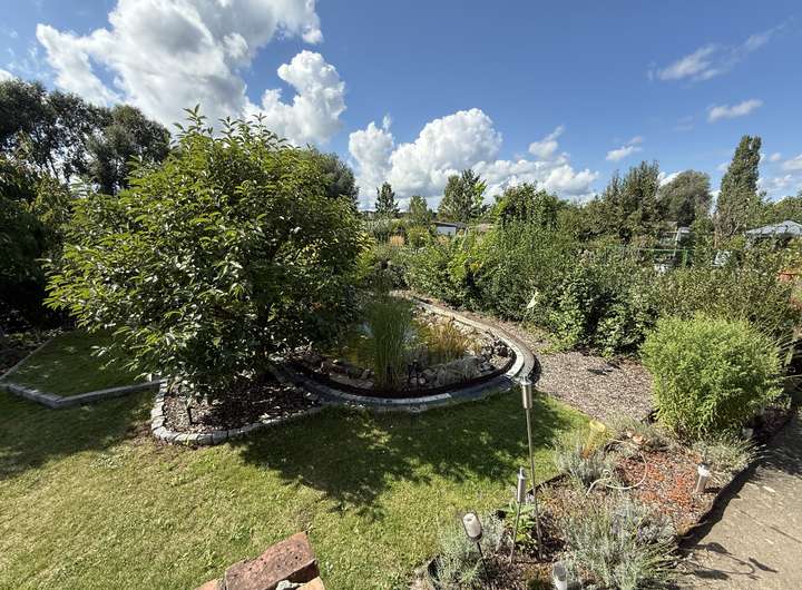 Es gibt keine Pflicht zum Anbau von Gemüse etc. (kein Kleingarten), aber natürlich ist das gern gesehen. Die Gärten sind durch jahrzehntelange Nutzung mit toller Erde und schönem Baumbestand gesegnet. Viele Parzellen haben einen kleinen Teich o.Ä. - bitte Bilder sehen.