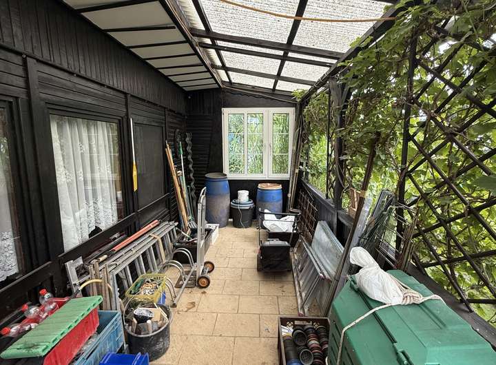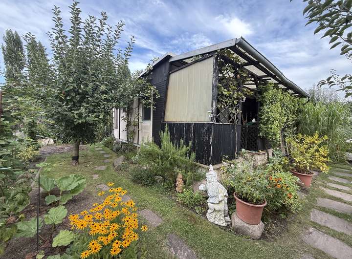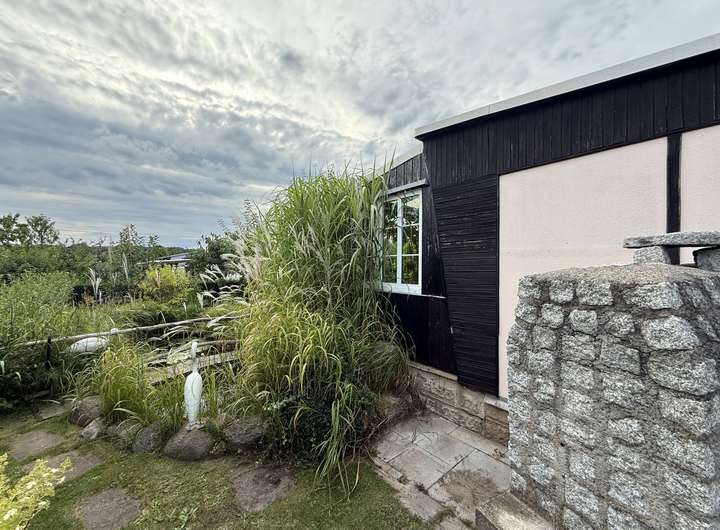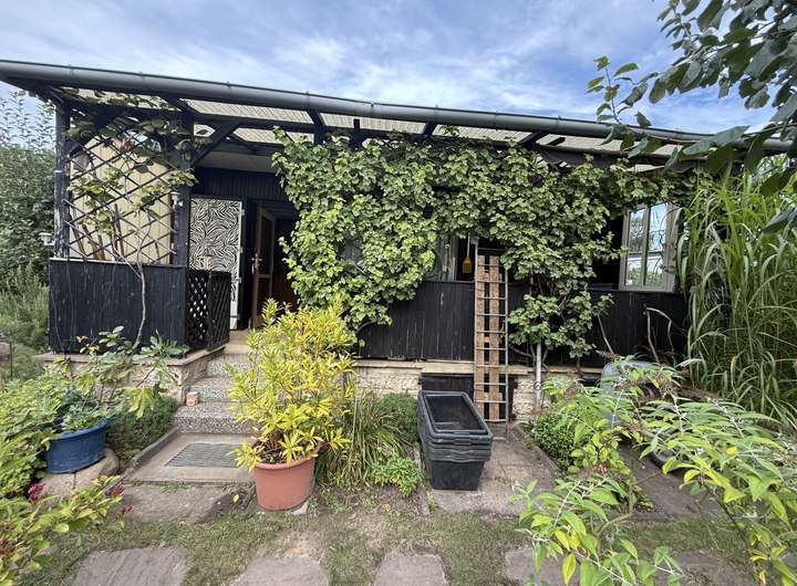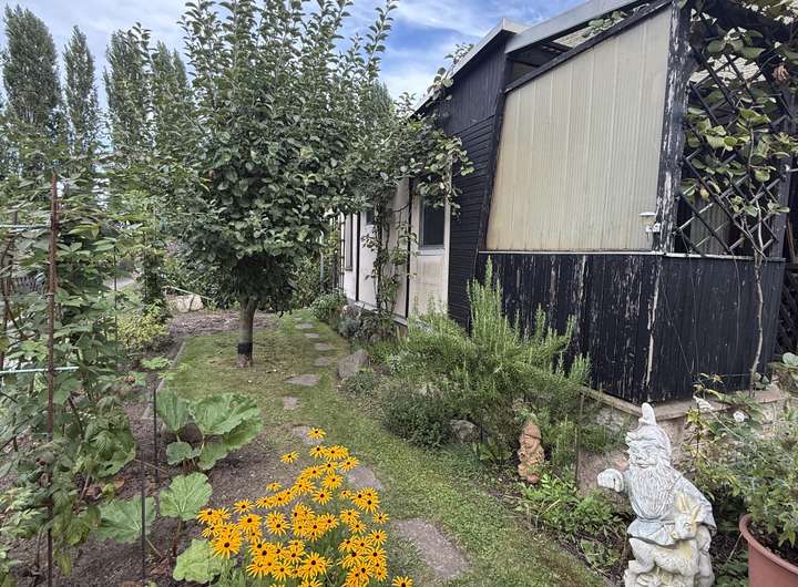 Es handelt sich um eine Parzelle (Größe der individuell umzäunten, eigenen Parzelle ohne Gemeinschaftsflächenanteile s. Feld "Grundstücksgröße") in einer großzügigen Anlage mit 57 Erholungsgärten.