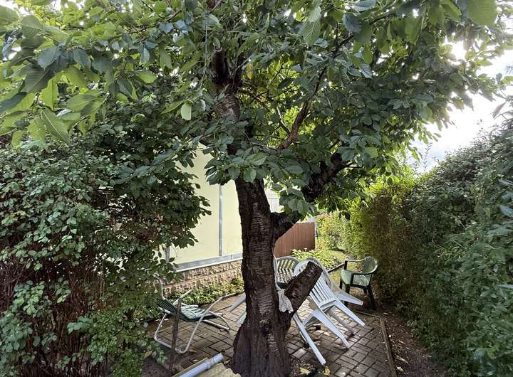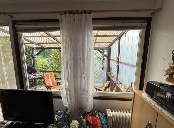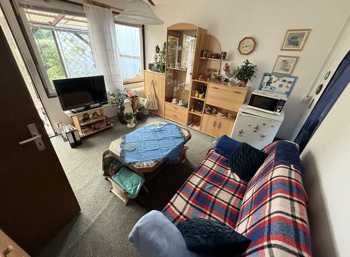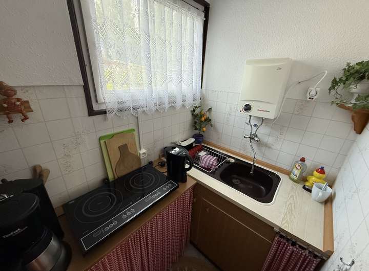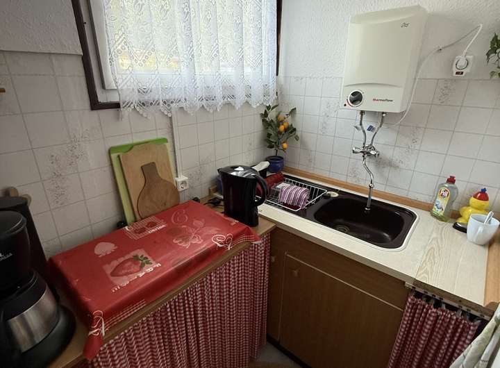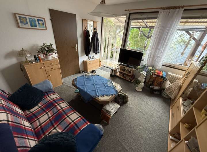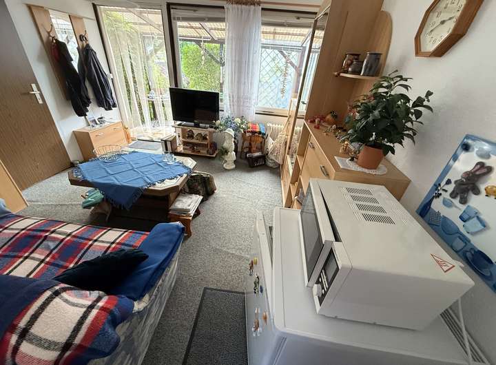Inventar zur Übernahme: Gesamte Möblierung, u.a. Küche inkl. Kochfeldern, Couch, Bett, Tische/Stühle, Werkzeuge und Gartengeräte, TV, Radiator, div. kleinere DInge. 2.500 EUR.