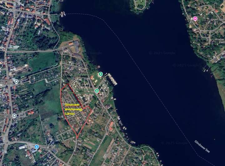Die Gartenanlage ist nur durch den Campingplatz vom Glindower See getrennt, in 2 Minuten ist man zu Fuß am See mit Badestellen, einem Strandbad und einem schönen Rad- und Wanderweg. Man kann um den See wandern, in die sogenannten "Glindower Alpen" oder auch den Obstpanoramaweg auf die Glindower Platte genießen. Der Weidenweg ist eine Privatstraße, an drei Seiten des Grundstücks findet überhaupt kein Verkehr statt (nur Fußverkehr/private Grundstückserschließung), die vierte Seite hat marginalen Verkehr, in erster Linie bestehend aus den Pächtern der anderen Parzellen. Die Parkplätze sind dort belegen, so dass keine internen Verkehre stattfinden - die internen Wege lassen aber ein Befahren zu, wenn man be- und entladen muss.