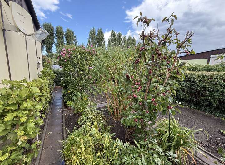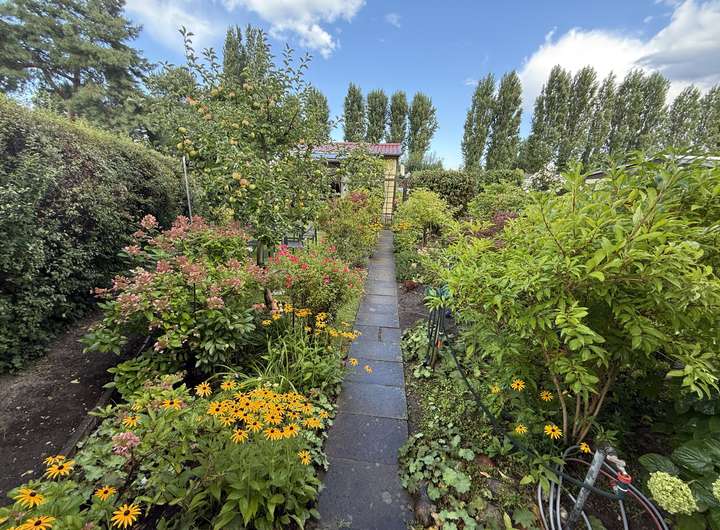 Es gibt keine Pflicht zum Anbau von Gemüse etc. (kein Kleingarten), aber natürlich ist das gern gesehen. Die Gärten sind durch jahrzehntelange Nutzung mit toller Erde und schönem Baumbestand gesegnet. Viele Parzellen haben einen kleinen Teich o.Ä. - bitte Bilder sehen.