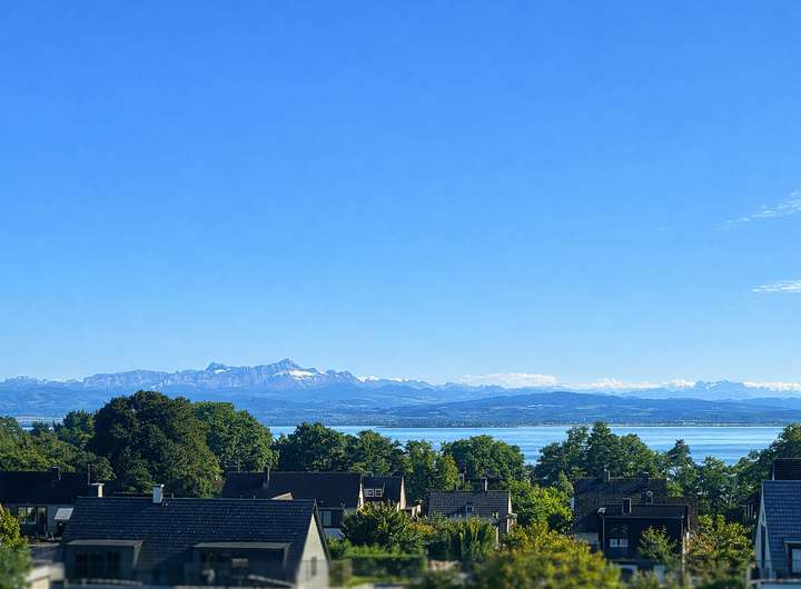 Überzeugen Sie sich bei einer Besichtigung vor Ort von dem durchdachten Grundriss und den hellen Räumen. Über den Flur gelangen Sie in den offen gestalteten Wohn- und Essbereich, von wo aus Sie direkten Zugang zur herrlich nach Süden ausgerichteten, großzügigen Terrasse (ca. 40m²) haben. Hier können Sie einen traumhaften Panoramablick über den Bodensee und die Alpenkette genießen. Im Wohnbereich befindet sich auch die hochwertige Einbauküche, mit Markengeräten ausgestattet. Außerdem bietet diese Wohnung 2 Bäder und 3 Schlafräume, einer davon hat Zugang zu einem ostseitigen Balkon.