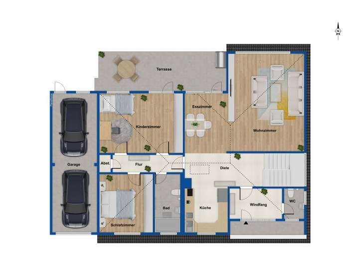 Komfort bietet auch die großzügige Doppelgarage, die über ein elektrisches Tor mit Fernbedienung verfügt. Ein weiterer Stellplatz direkt vor der Garage ist ebenfalls vorhanden.