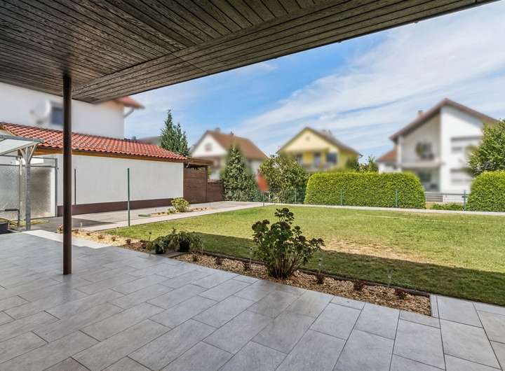 Zur Sicherheit trägt ein modernes Kamerasystem bei, das sowohl die Vorder- als auch die Rückseite des Hauses überwacht. Vor dem Haus befindet sich ein kleiner, gepflegter Vorgarten, während sich auf der Rückseite ein ruhiger Garten mit viel Grün und Privatsphäre anschließt – ideal zum Entspannen, Spielen oder Gärtnern.
