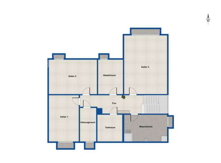 Das voll unterkellerte Untergeschoss, mit normaler Deckenhöhe, wurde weitgehend ausgebaut und ist größtenteils beheizt. Drei Räume verfügen über Oberlichter und Heizkörper und eignen sich optimal als Homeoffice, Gästezimmer oder Hobbybereiche. Der Vorratskeller ist unbeheizt und hat kein Fenster, bietet jedoch nützliche Staufläche.